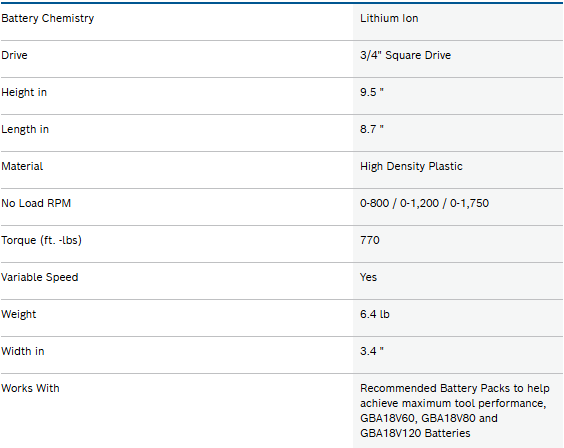- High-torque motor – delivers up to 770 Ft.-Lbs. of fastening torque and 1,250 Ft.-Lbs. of max breakaway torque